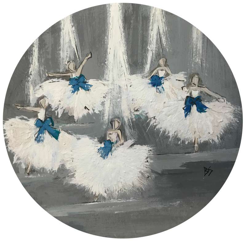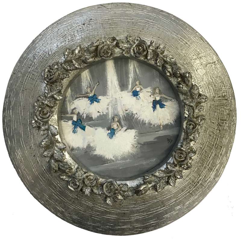 'On Stage' Gouache on Board in Silver Gilt Circular Frame