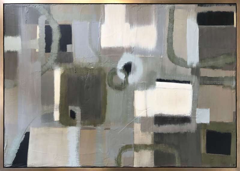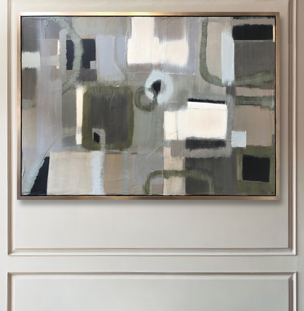 ‘Foliate’ Oil Acrylic & Gesso on Board in Bronze/Gold Finish Shadow Gap Tray Frame