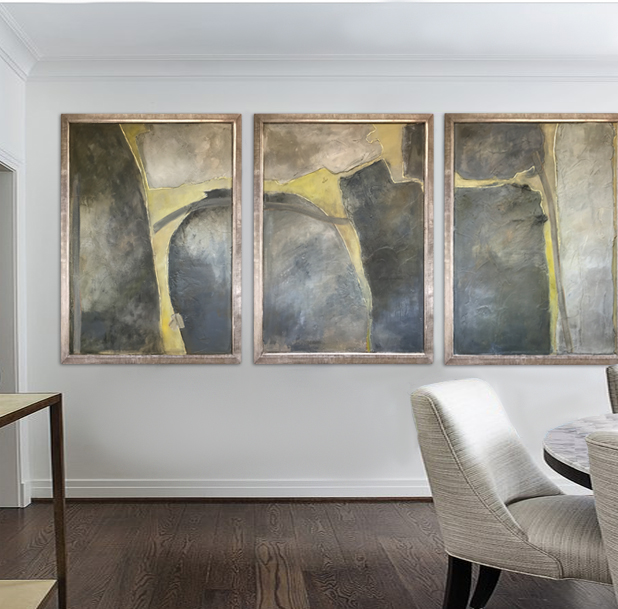 TRIPTYCH ‘River Stones Triptych’ Oil, Acrylic and Gesso on Board in Silver Gilt Frames