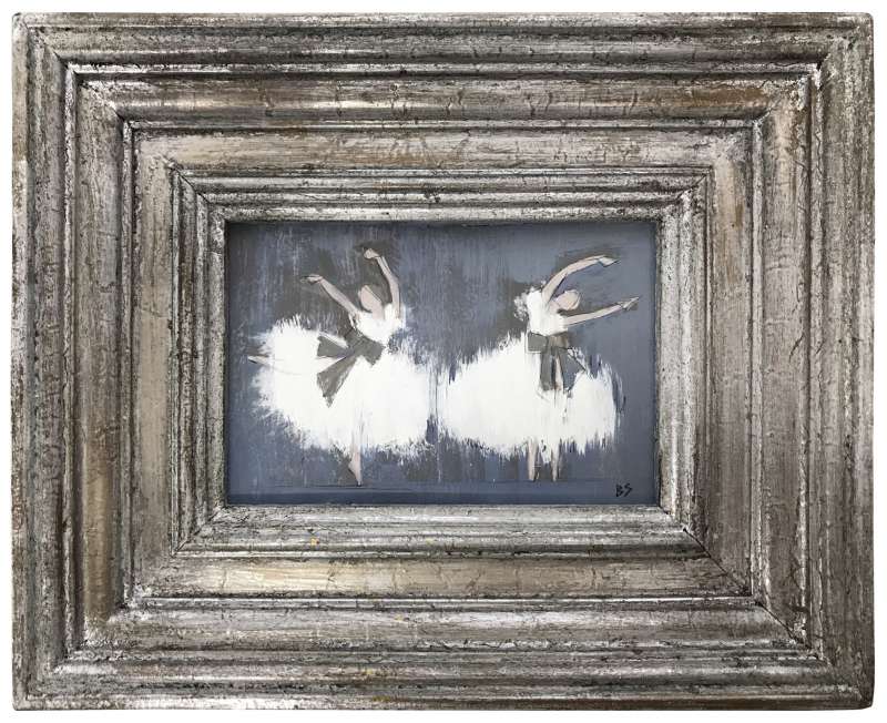 ‘Romantic Tutus’ Gouache & Acrylic on Board in Silver Gilt Frame