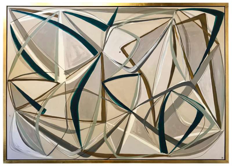 'String Theory in Gesso & Petrel Blue II' Oil & Acrylic on Board in Gold/Bronze Finish Shadow Gap Tray Frame