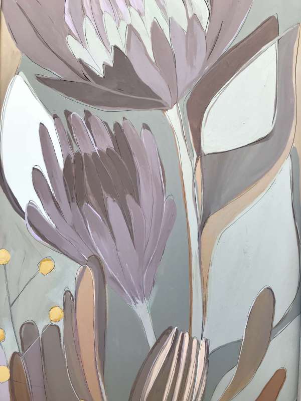 ‘Protea Flowers’ Gouache & Acrylic on Board in Wooden Polished Gesso Frame
