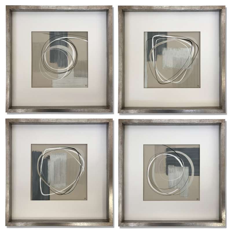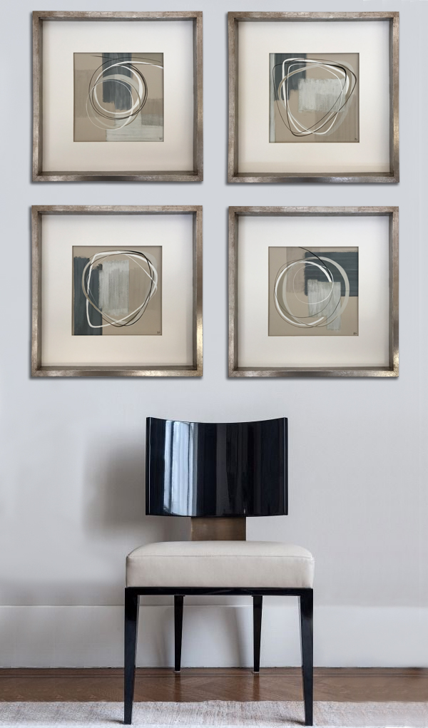 SET OF 4 ‘Alto’ Gouache & Acrylic on Board behind Glass in Silver Leaf with Bronze Finish Frames