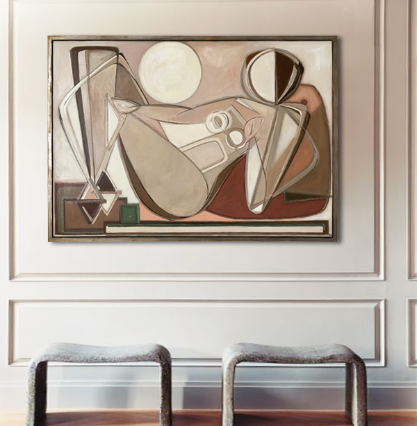 'Luna Muse with Star' Oil & Acrylic in Silver Leaf with Antique Bronze Finish Shadow-Gap Tray Frame