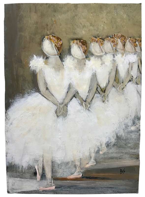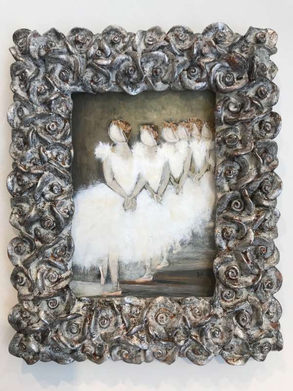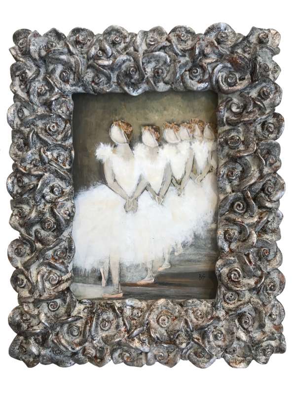 MINIATURE ‘Swan Lake’ Gouache & Acrylic on Board In Ornate Silver Leaf with Antique Finish Floral Frame