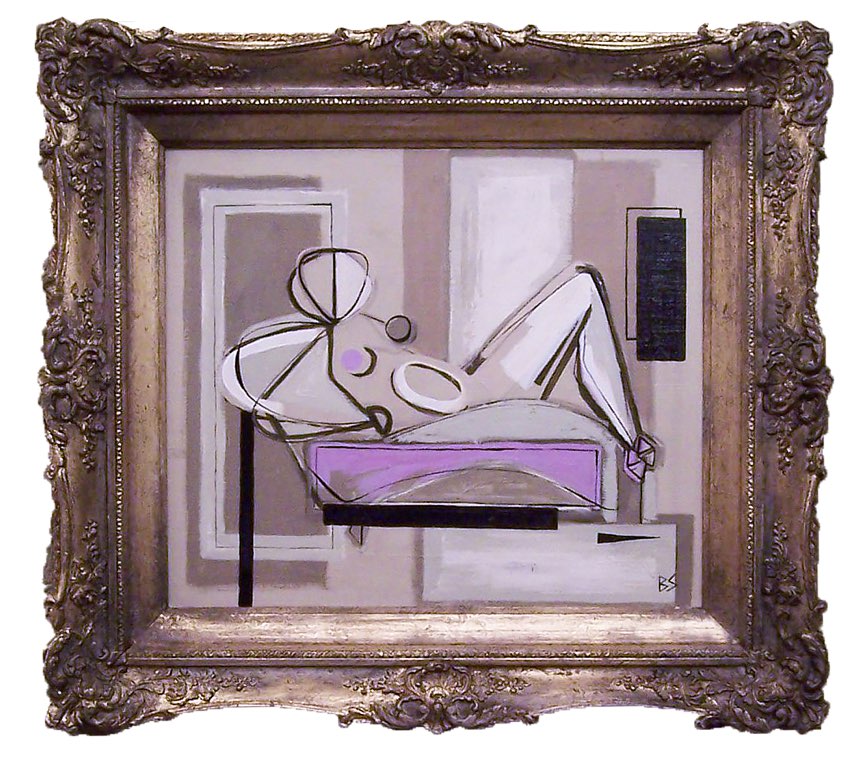 Reclining Women on a Lilac Couch in Antique Gold Frame