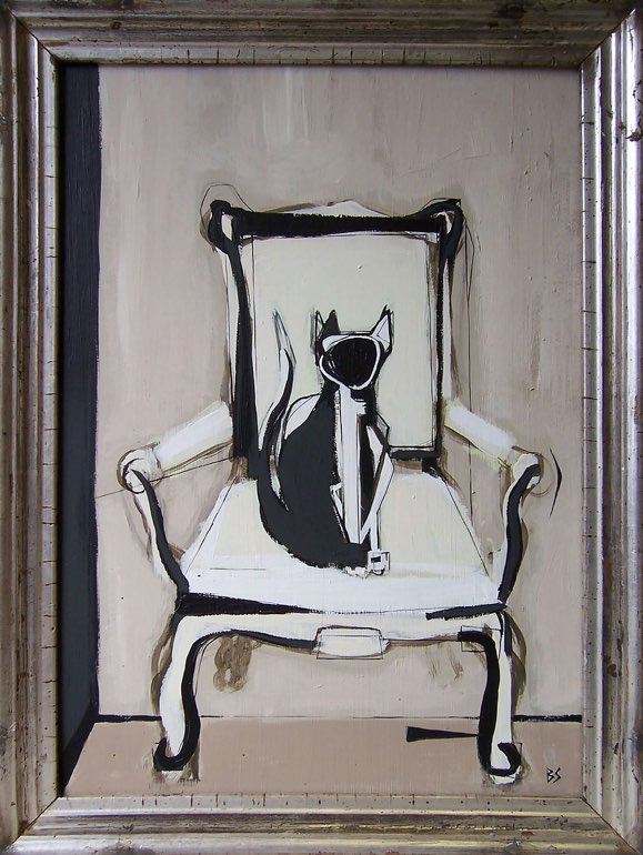 'Rupert on a Chair' Oil and Acrylic on Board in Antique Frame