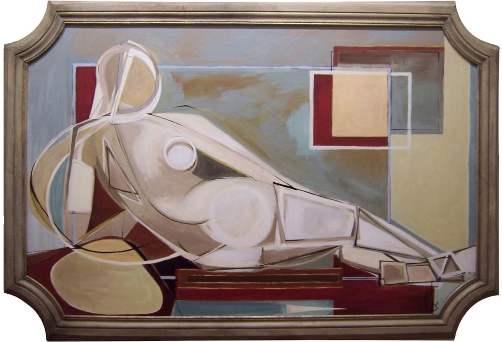'Reclining Woman by Window' Oil/Acryllic on Board in Antique Frame