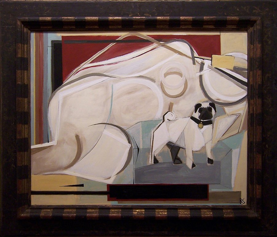 'Pug Dog' Oil/Acryllic in Antique Italian Frame
