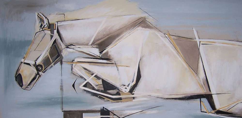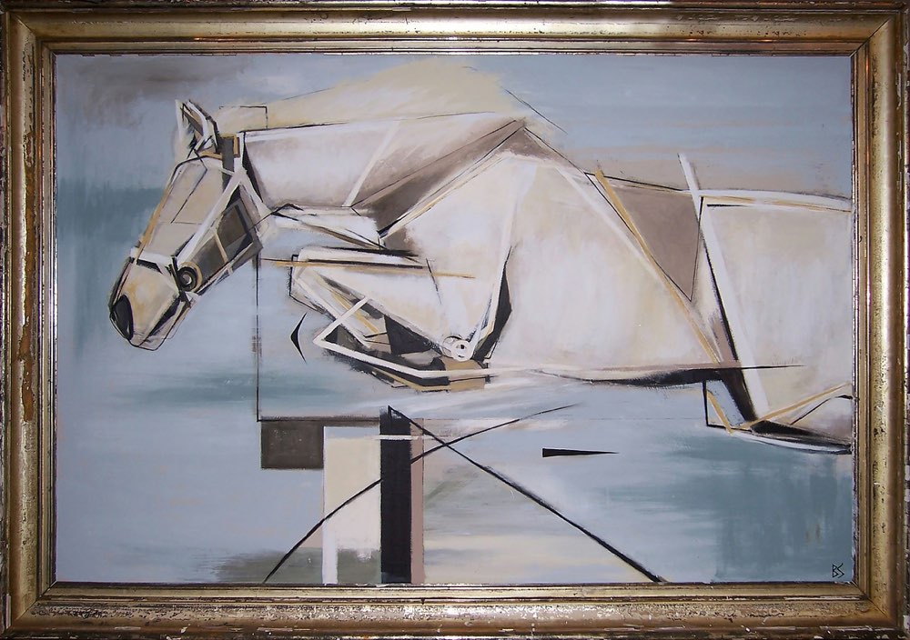 'Jumping Horse' Acryllic on Board in Antique Frame