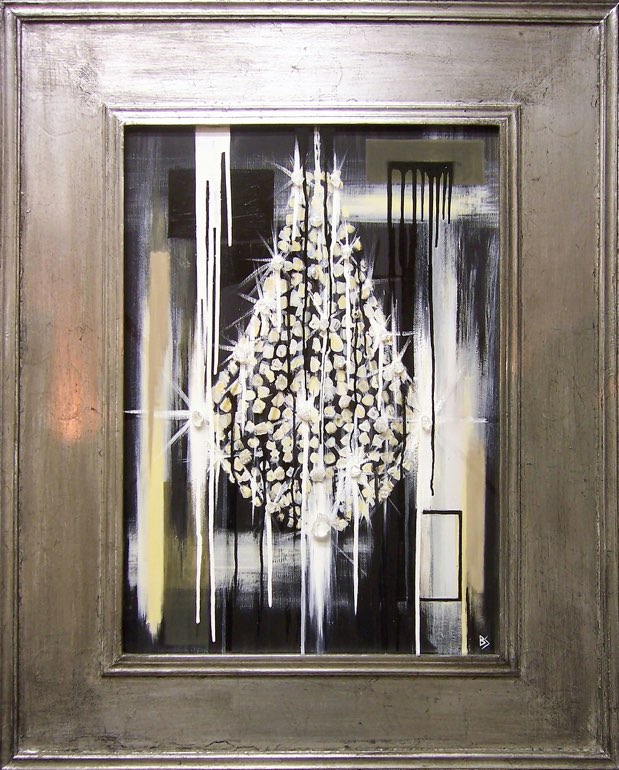 Commission 'Mini Chandelier Painting' Oil/Acryllic/Glass on Board in Modern Silver Frame