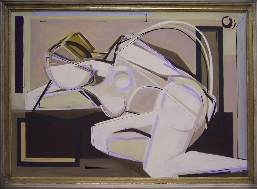 'Reclining in Purple' Oil and Acryllic on Board in Gilt & Painted Frame