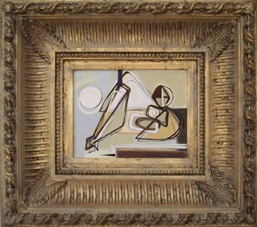 'Sunlit Nude' Gouache on Board in Gilt Box Frame