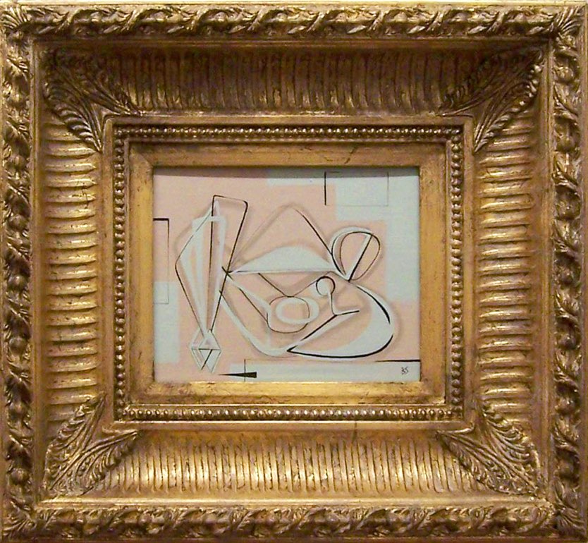 Posing in Blue Left Study Gouache on Board in Modern Gilt & Painted Box Frame
