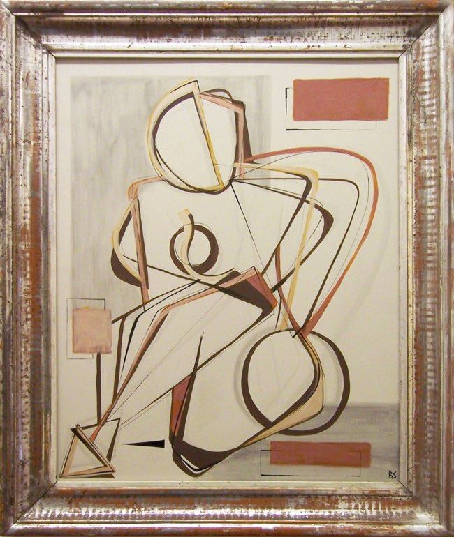 'Man Ray Figure in Brown' Left Study of PAIR Gouache on Board in Antique Silver Water Gilt Frame