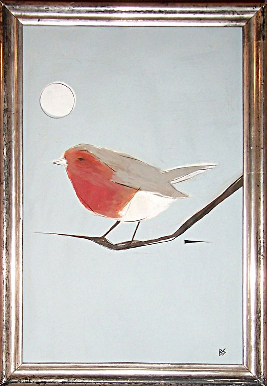 'Midnight Robin' Gouche & Watercolour on Paper in Antique Silver Water Gilt Frame