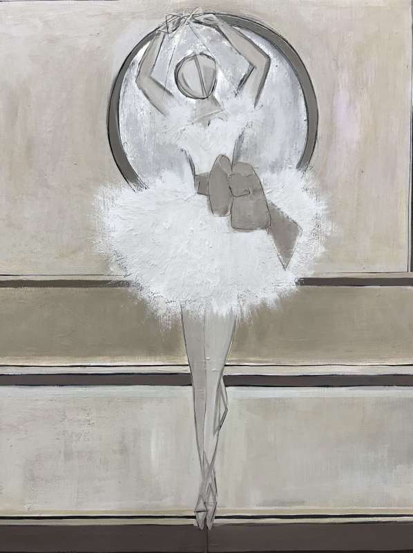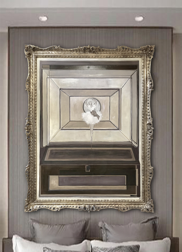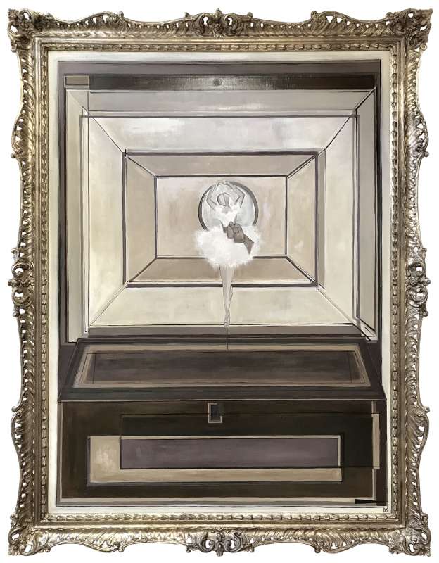 'Jewellery Box Ballerina' Oil, Acrylic & Silver Leaf on Board in Antique Gold Frame
