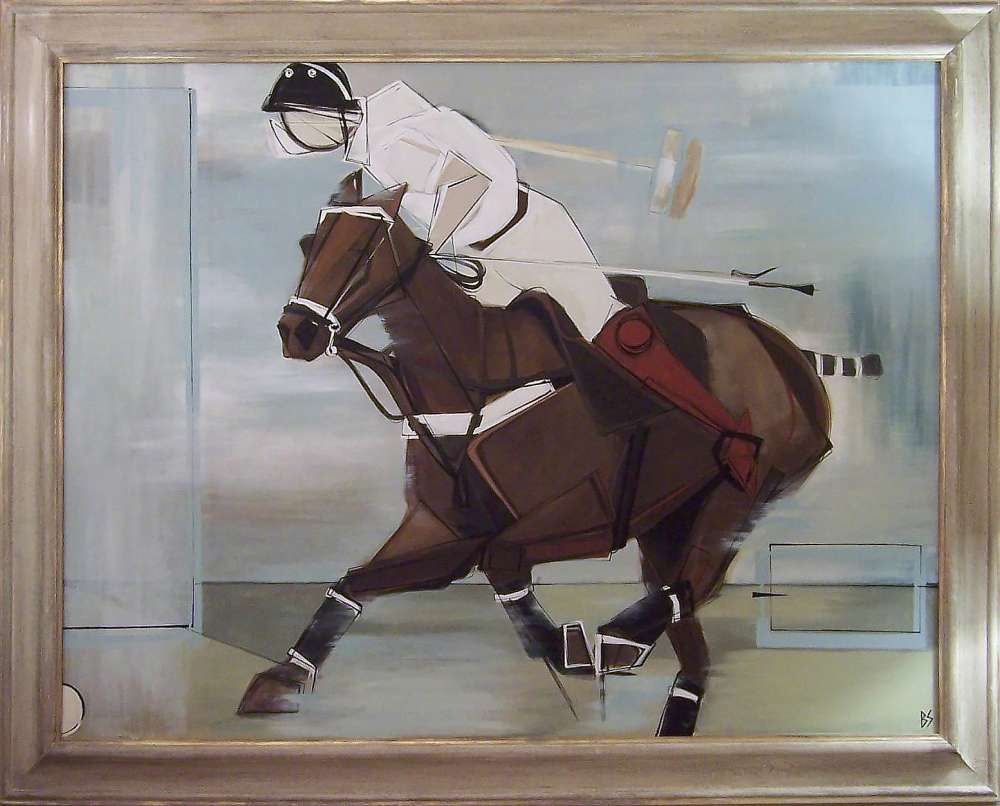 'The Polo Player' Oil & Acrylic on Board in Modern Cream & Gold Frame