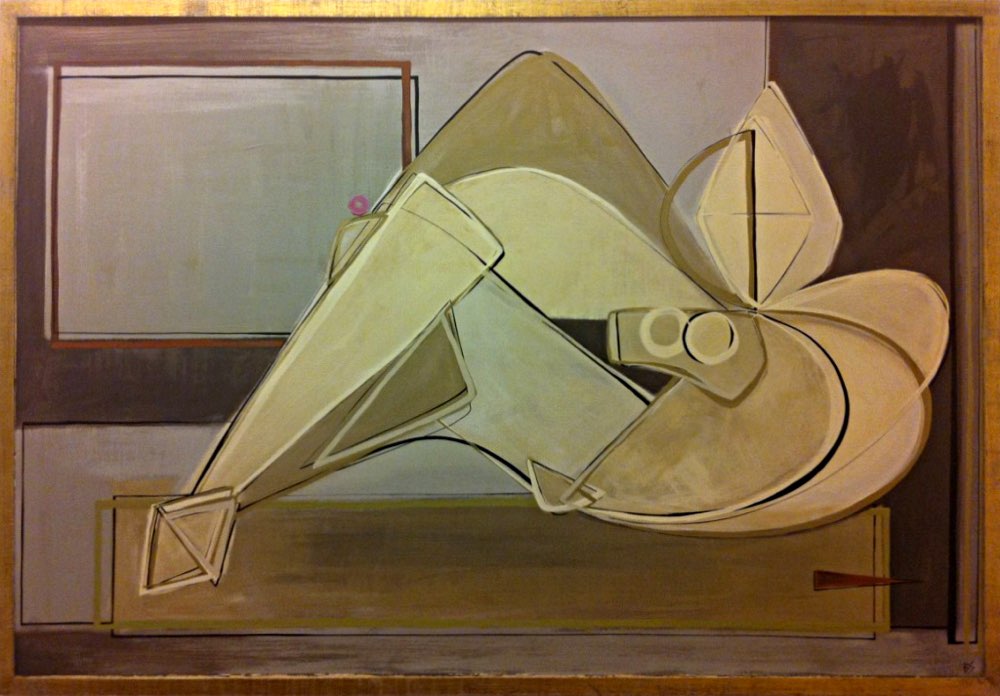 'Mona Reclining' Gouache on Board in Gilded Fame
