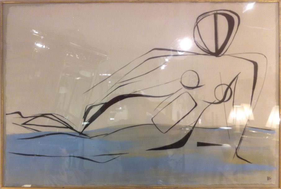 'Bathing Belle' Gouache on Paper in Gilt Frame