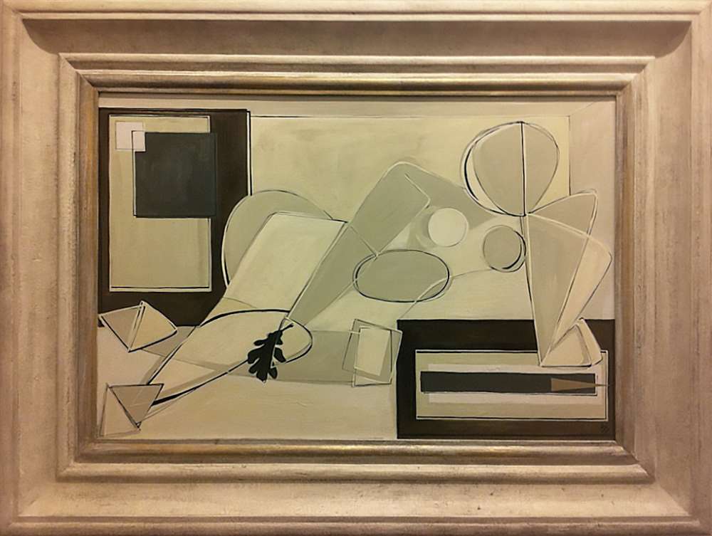 'Guinevere & Oak Leaf' Oil & Acrylic on Board in Stone Finish & Gold Classic Frame