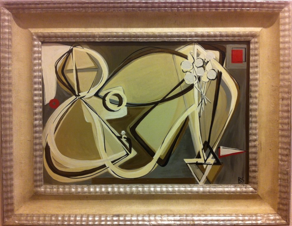 'The Bride' Oil & Acrylic on Board in Silver Gilt & Cream Piecrust Frame