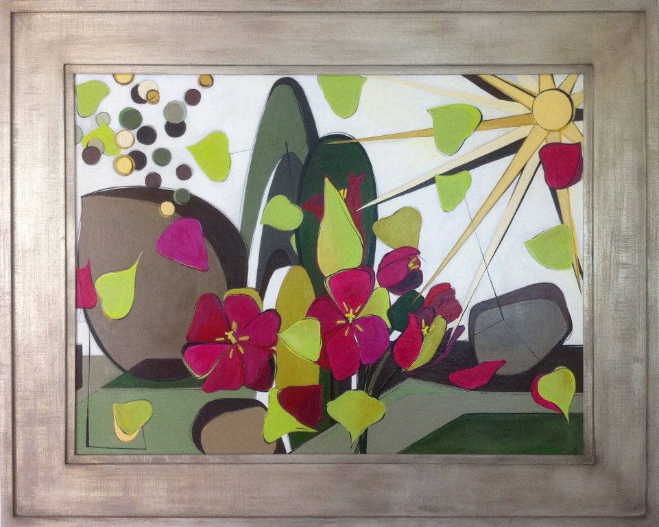 'Spring Garden' Oil & Acrylic on Board in Broad Silver Gilt Frame