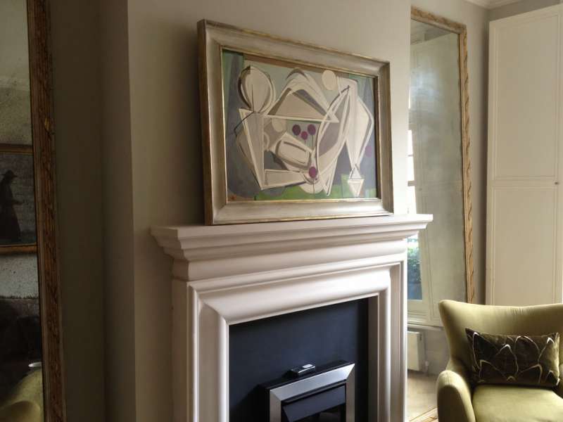 'Elizabeth Reclining in French Garden' Oil & Acrylic on Board in Cream & Gold Gilt Frame