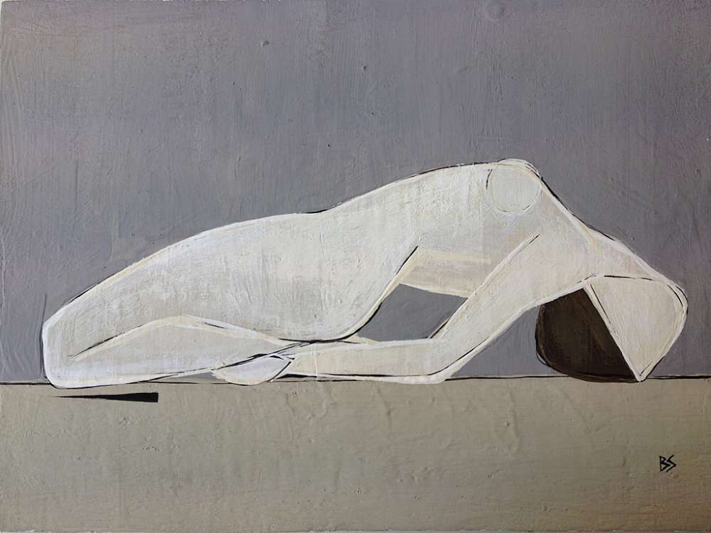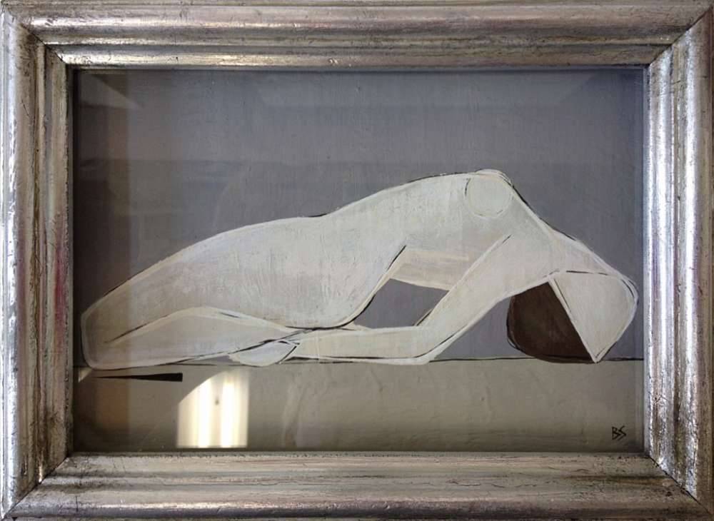 'Lay Back' Gouache on Board in Silver Gilt Exhibition Box Frame