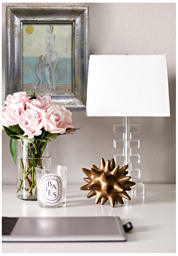 'Summer Time' Gouache & Acrylic on Board in Silver Gilt Frame