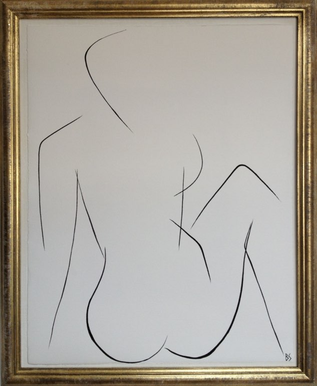 'Nude Pose' No.2 Gouache Linear on Handmade Paper in Gold Gilt Frame