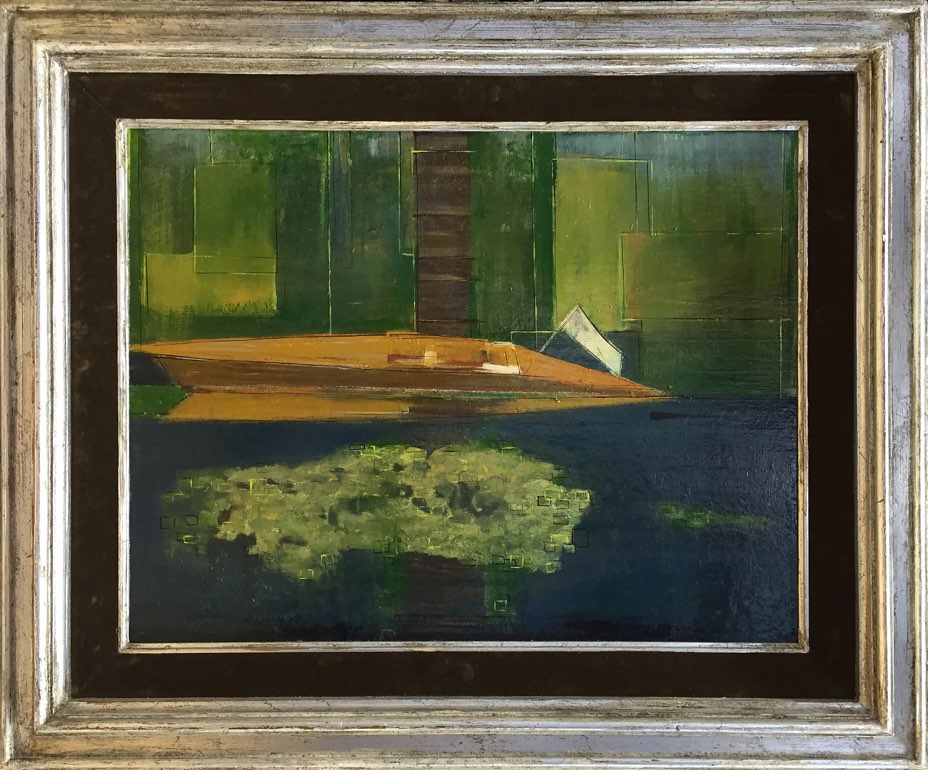 'Slipper Sunday' Oil & Acrylic on Board in Antique Silver Gilt and Brown Velvet Frame