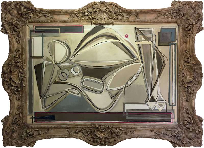 'Olympia' Oil & Acrylic on Board in Massive Ornate Gold Gilt Modern Frame