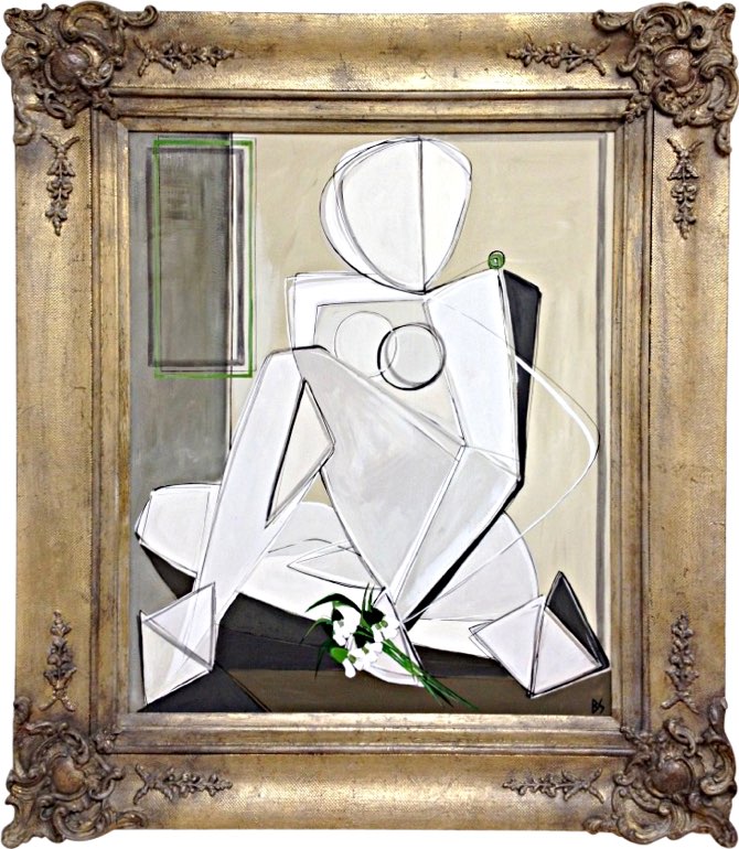 'Belle with Snowdrops' Oil & Acrylic on Board in Gold Leaf Ornate Antique Frame