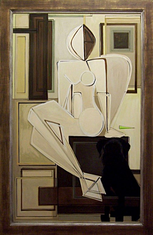 'Angela Sitting with Lottie' Right Study Oil & Acrylic on Board in Bronze & Silver Finish Bespoke Wooden Frame