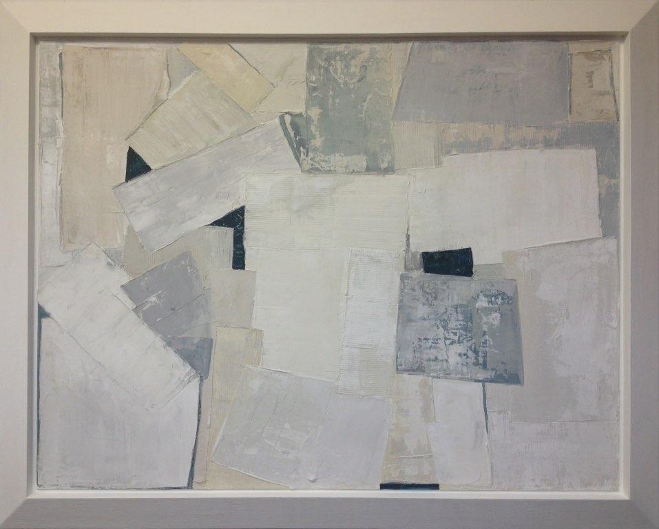 'Blue Slate' Acrylic & Gesso in 1970s Gesso finish Tray Frame with Sloping Edges