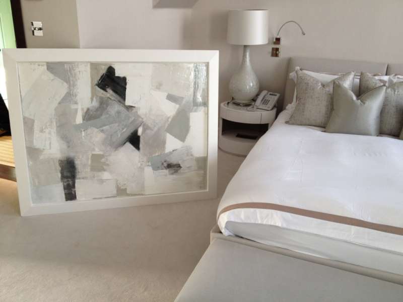 'Slate' Oil, Acrylic & Gesso on Board in 1970s Gesso finish Tray Frame with Sloping Edges