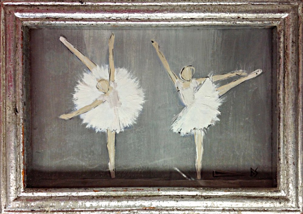'Little Dancers' Gouache on Board in Bespoke Silver Gilt Frame