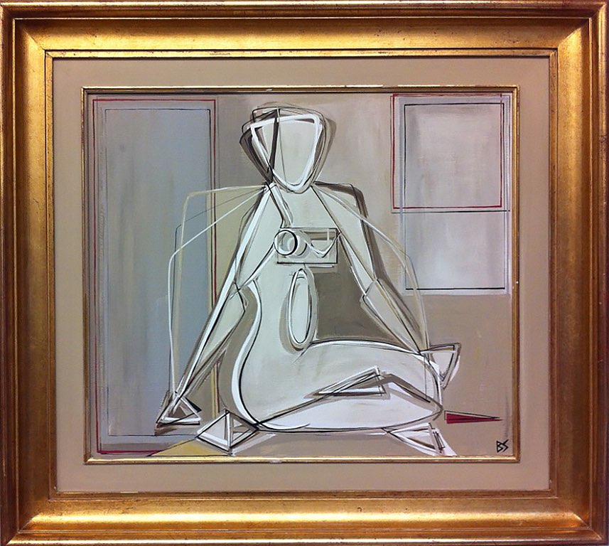 'Sitting Bella' Oil & Acrylic on Board in Gold Leaf Frame