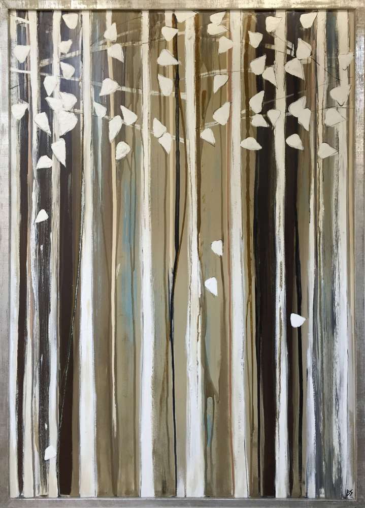 'Silver Birch Forest' Oil & Acrylic on Board in silver leaf frame