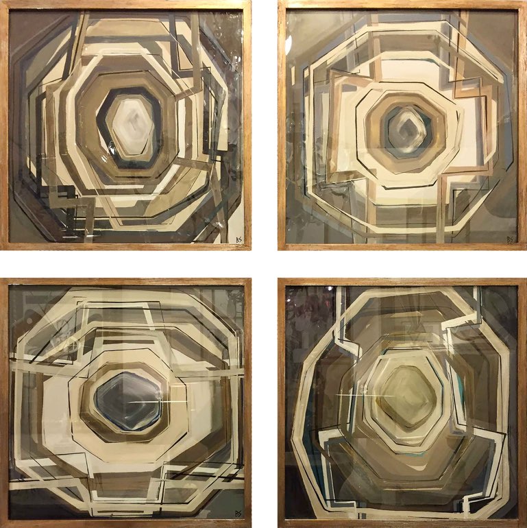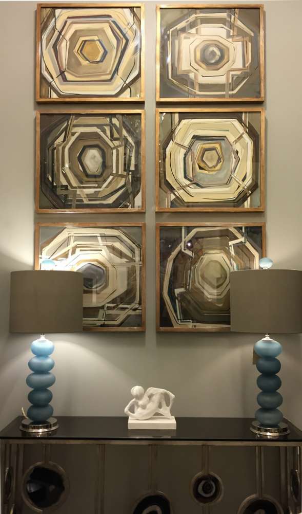 SET OF 6 'Agate' Oil & Acrylic on Board in Gold Finish Tray Frames