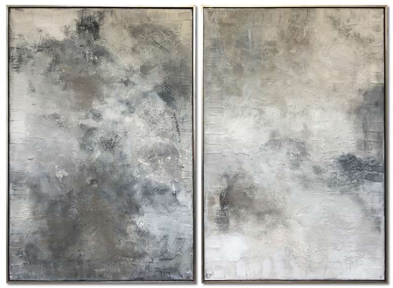 PAIR 'Mist' Oil & Acrylic on Board in Bronze/Silver Finish Tray Frames