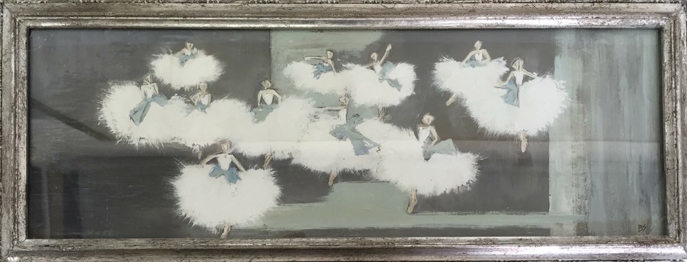 'Swan Lake' Oil Gouache & Acrylic on Board behind Glass in Bespoke Silver Gilt wooden Frame