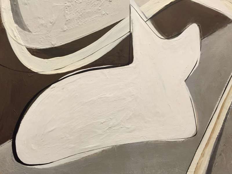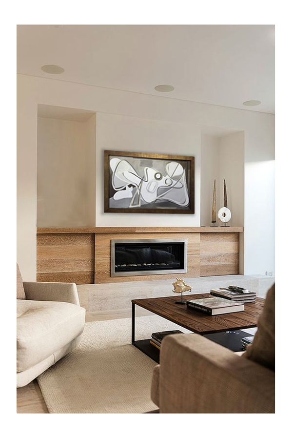 ‘Olympia and Cat’ Oil & Acrylic on Board in 1970s Gold/Bronze Finish Tray Frame with Sloping Edges