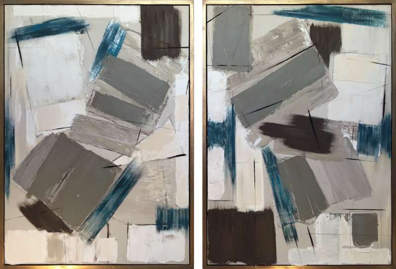 PAIR ‘Midnight Lining’ Oil & Acrylic on Board in Gold/Bronze Finish Shadow Gap Tray Frames