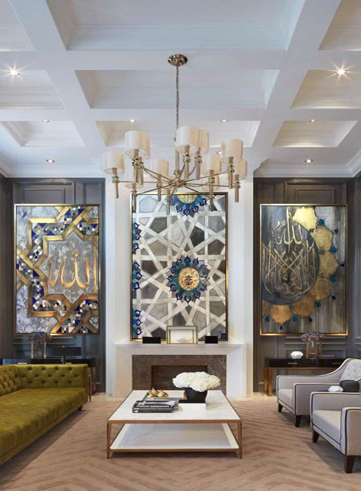 ‘Tile Series 3’ Oil, Gold Leaf and Acrylic on Board in Gold Gilt Finish Shadow Gap Tray Frame
