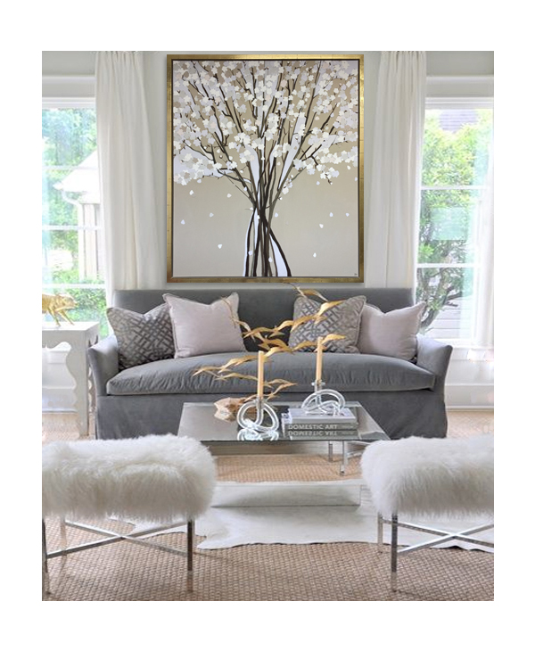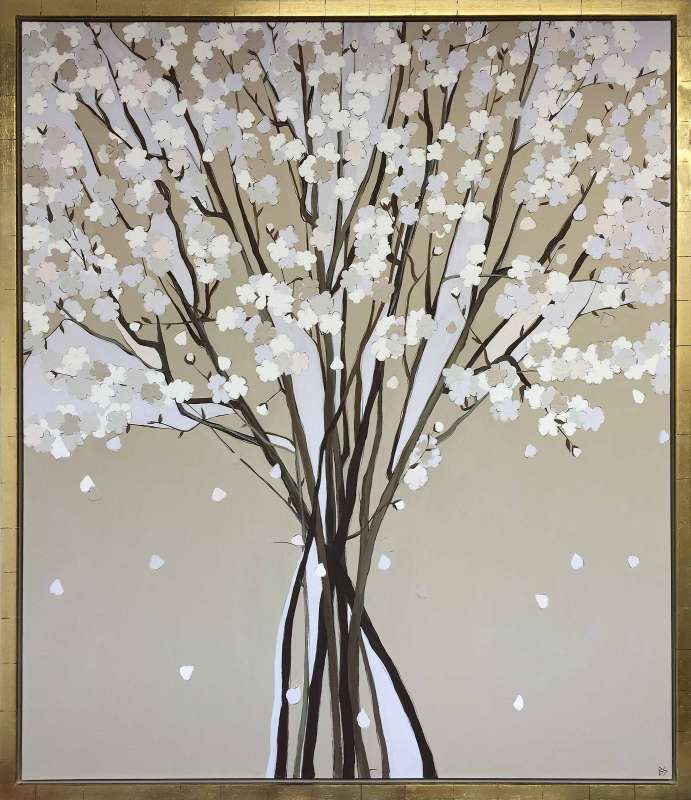 ‘Spring Blossom’ Gouache & Acrylic on Board in Gold Leaf Shadow Gap Frame