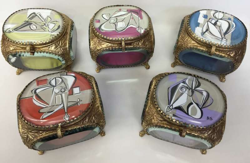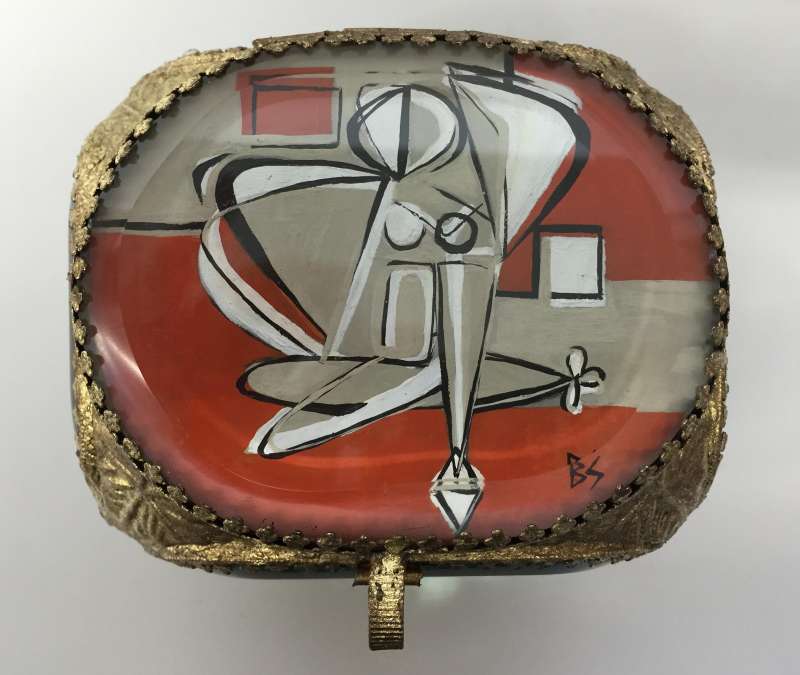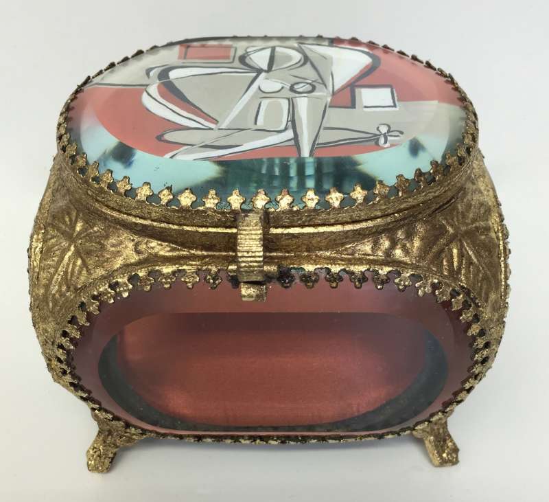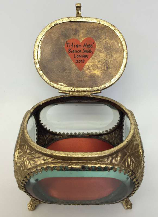 Treasure Box ‘Titian Muse’ Gouache on Paper under Cut Glass in Gold Gilt Metal Box
