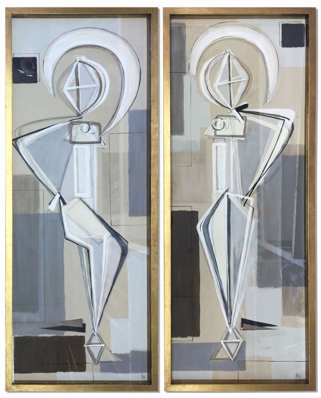 PAIR ‘Dancer’ Left & Right Study Gouache on Board in Gold/Bronze Presentation Frame behind Glass