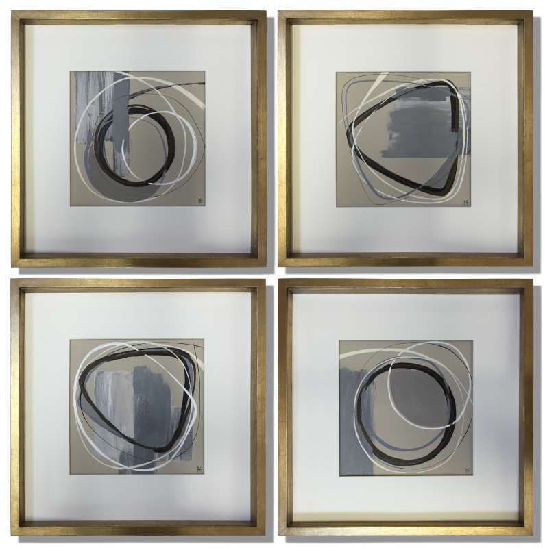 SET OF FOUR ‘Motion in Four’ Gouache on Board in Presentation Box Frames in Gold/Brushed Silver Finish